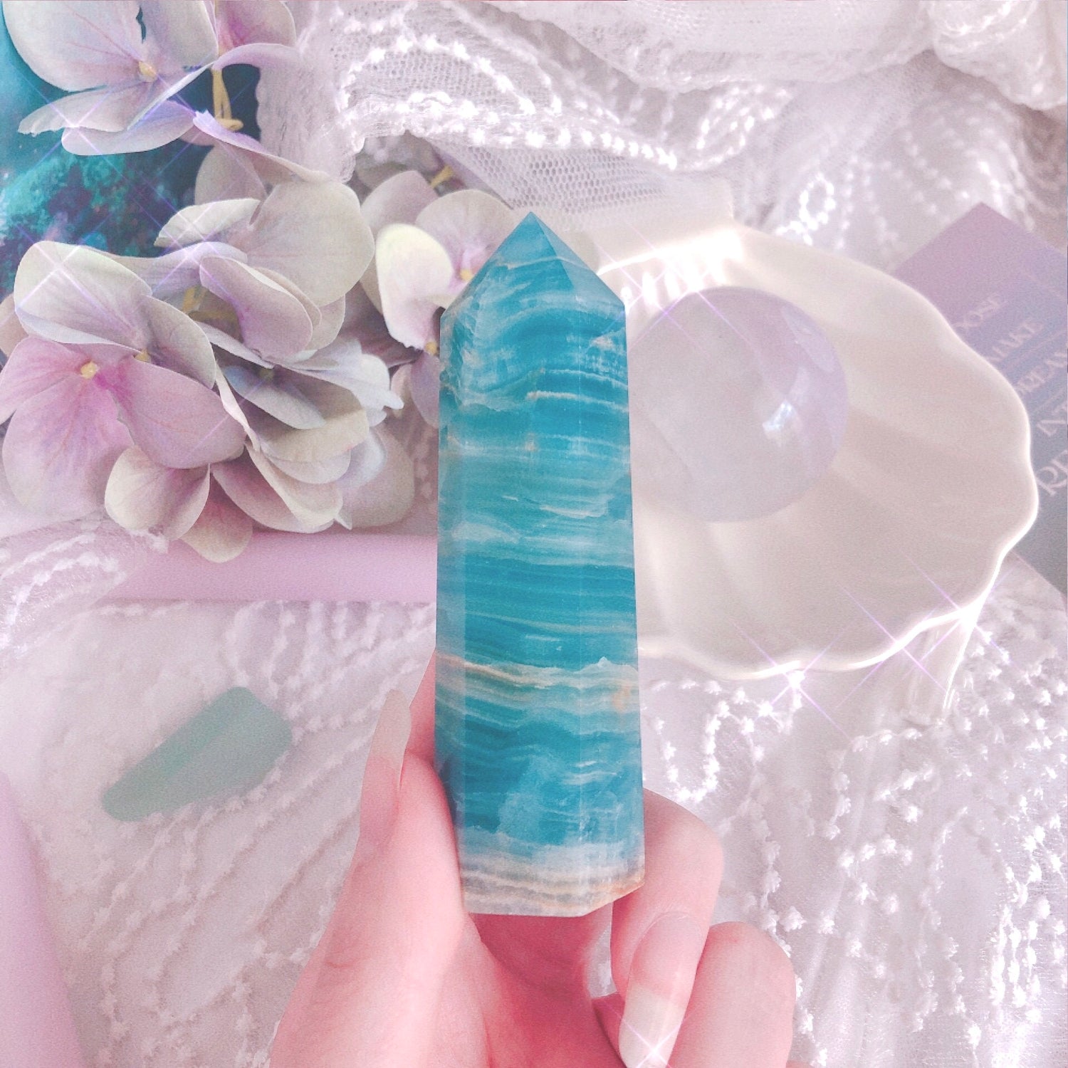 Lemurian Aquatine Calcite resonates with the ancient lost civilisation of Lemuria, who held a deep connection to the cosmos. Because of this, this crystal holds spiritual wisdom & knowledge within its form, making it perfect for anyone seeking to connect more with their higher self or ancient ancestors. It is also the perfect stone to use for healing the soul from past emotional wounds, both in this incarnation & previous ones. Lemurian Calcite is connected to the dream state & can bring insightful messages whilst sleeping or during hypnosis or meditation. It can strengthen intuition & open honest & easy communication with spirit guides. Its soothing & calming energy also makes it a great sleeping aid & stress reliever.