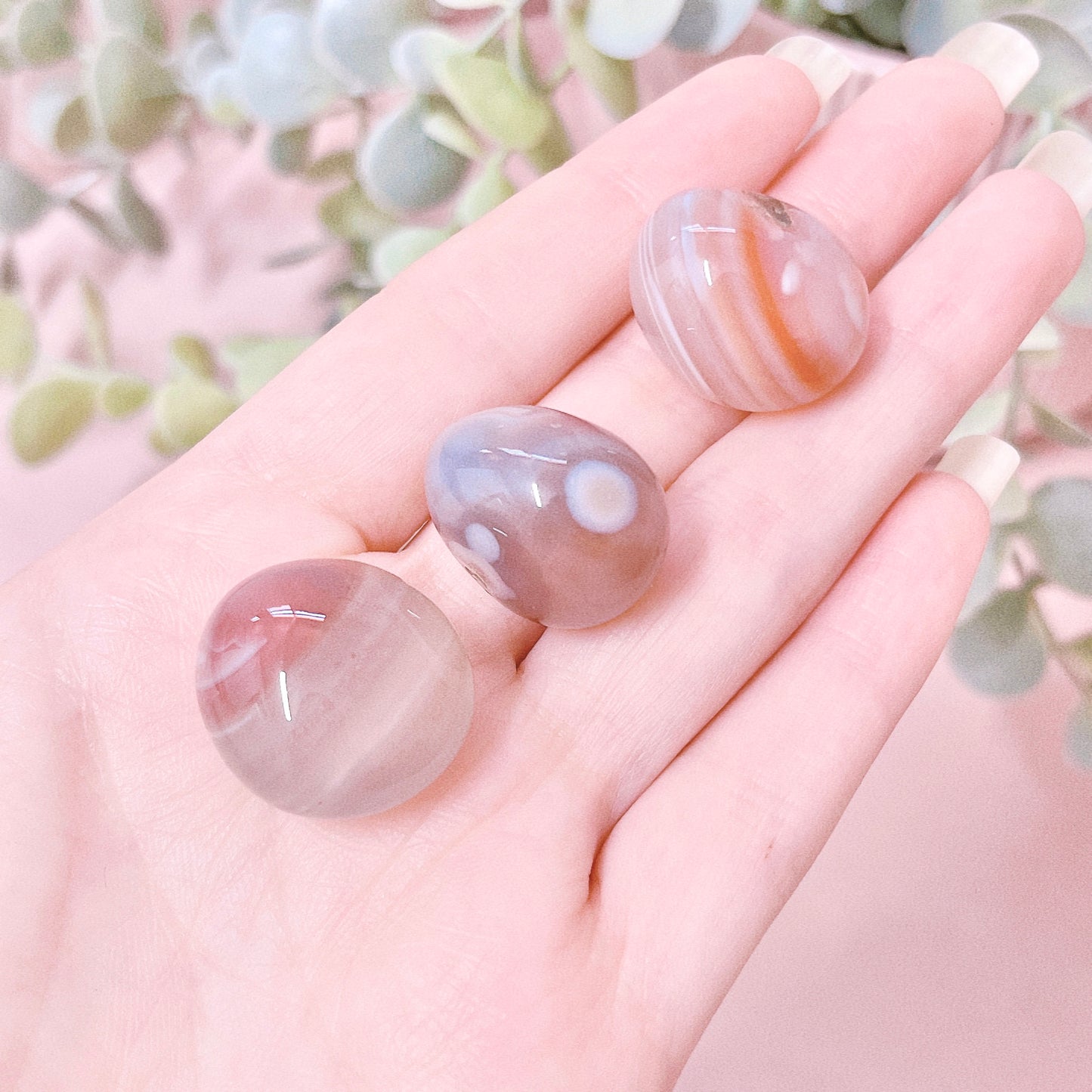 Agate holds a gentle, grounding energy that can guide you out of a state of overwhelm, & help you recenter. It allows you to move forward in life with strength & confidence. The colour found within Agate will often give insight into the power held within. Blue brings a soft, relaxing energy, which can help with truth & communication. Pink or Green can heal the heart & inspire self-love, growth & healing...