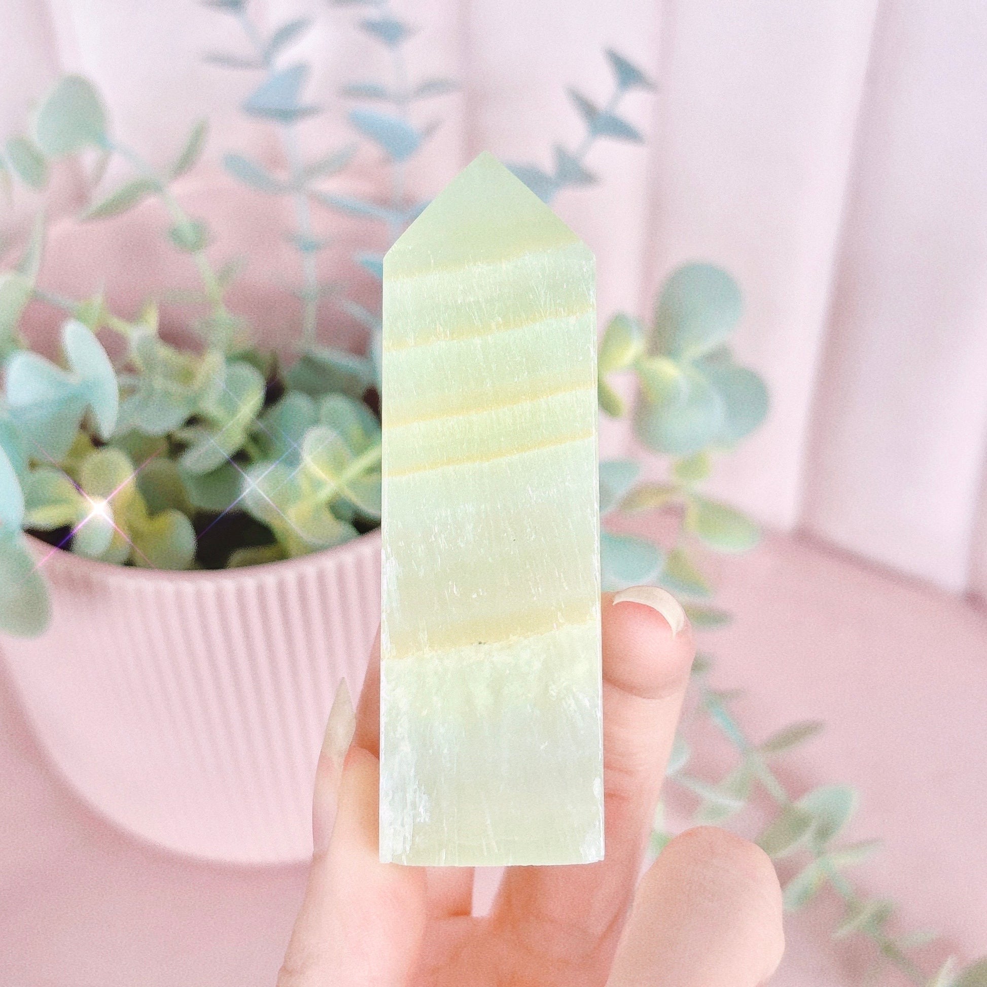 Green Calcite holds a healing, cleansing energy that resonates strongly with the Heart Chakra. This crystal inspires divine love, harmony & balance, & releases any pain or heartache. Green Calcite encourages positive growth in all areas of life, whether personal, professional or financial. By removing stagnant energy, this crystal acts as powerful magnet for wealth, abundance & success...