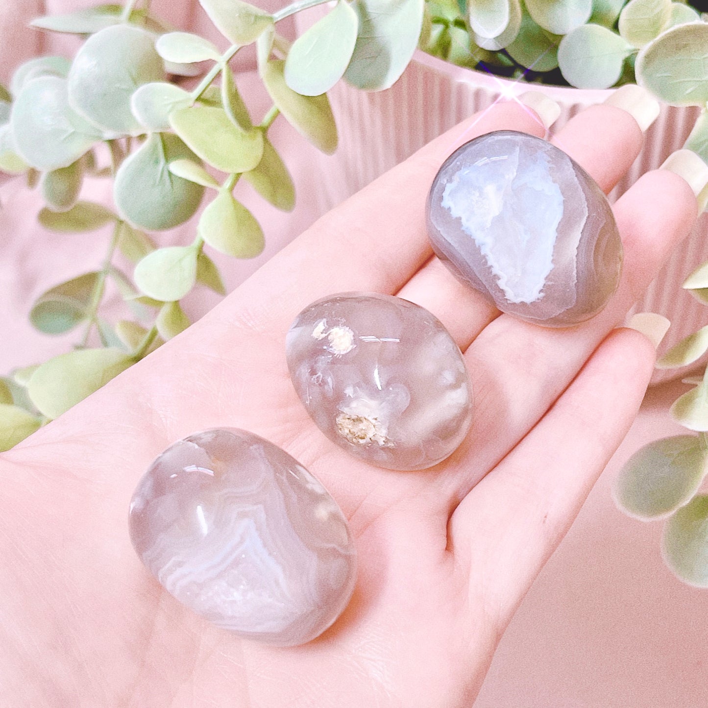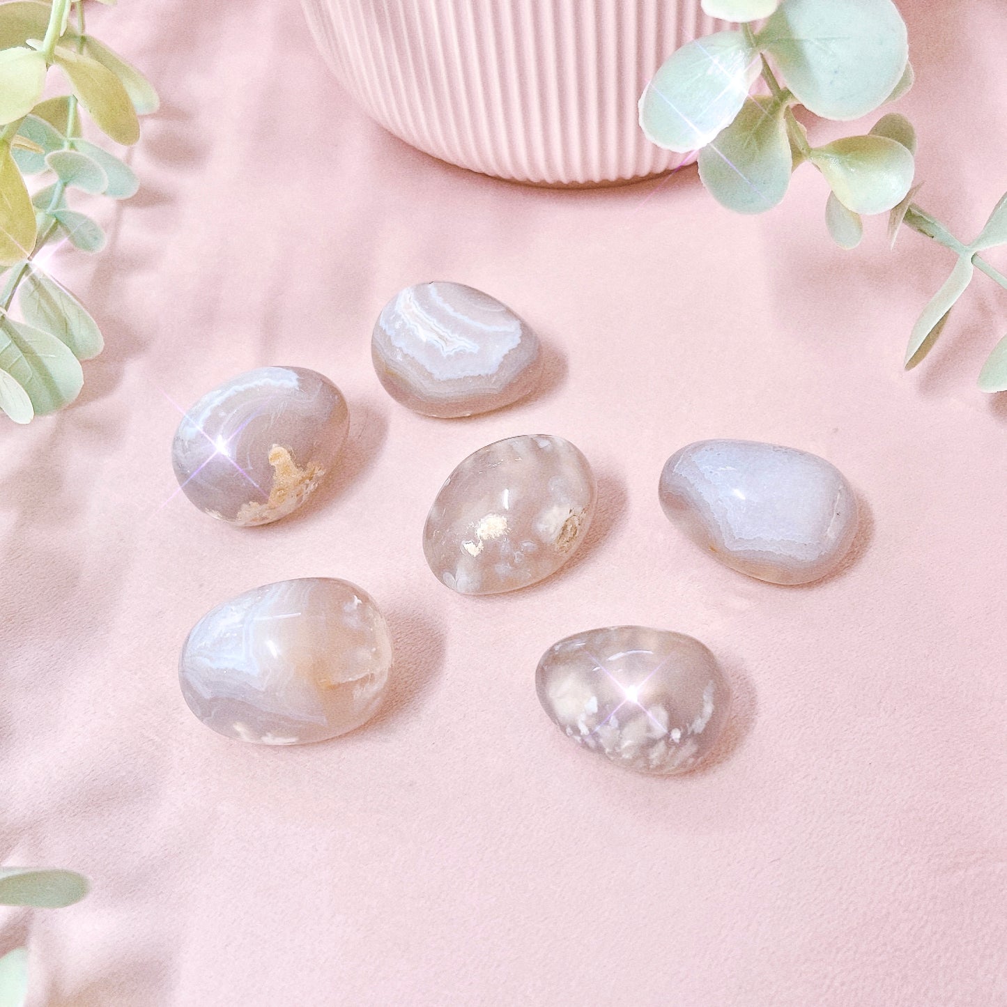 Newly discovered in 2018 in Madagascar, Flower Agate is a soft & encouraging stone, known for its gentle energy. Its surface is reminiscent of tiny blossoming flowers, created by the opaque Chalcedony inclusions within. Just like these blooming floral plumes, this stone encourages us to grow & evolve, from seeds into our fullest potential. Flower Agate calls us towards our dreams, releasing all apprehension, fear & doubt…