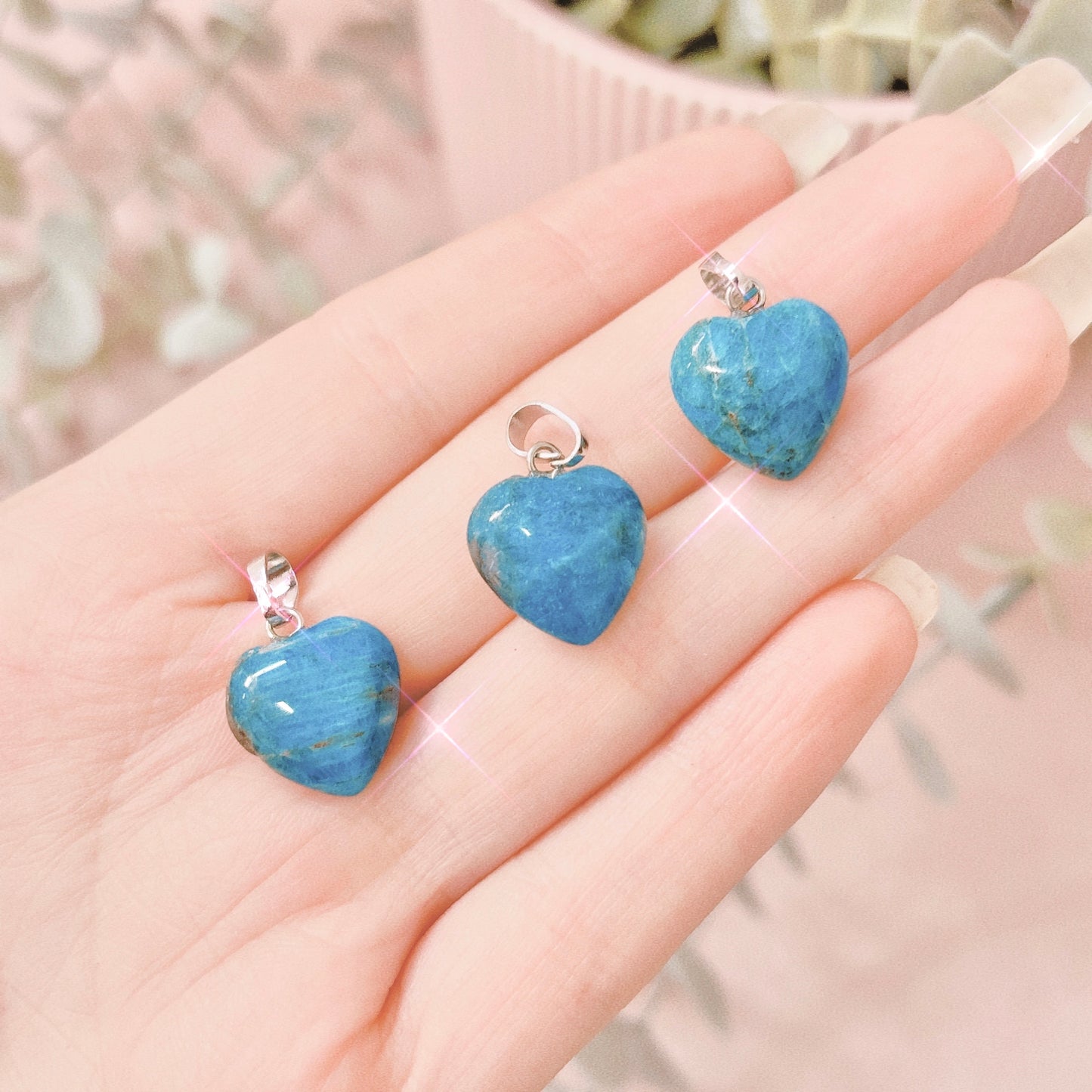 You will receive one blue apatite heart pendant, selected intuitively. Necklaces are not included, sold separately.