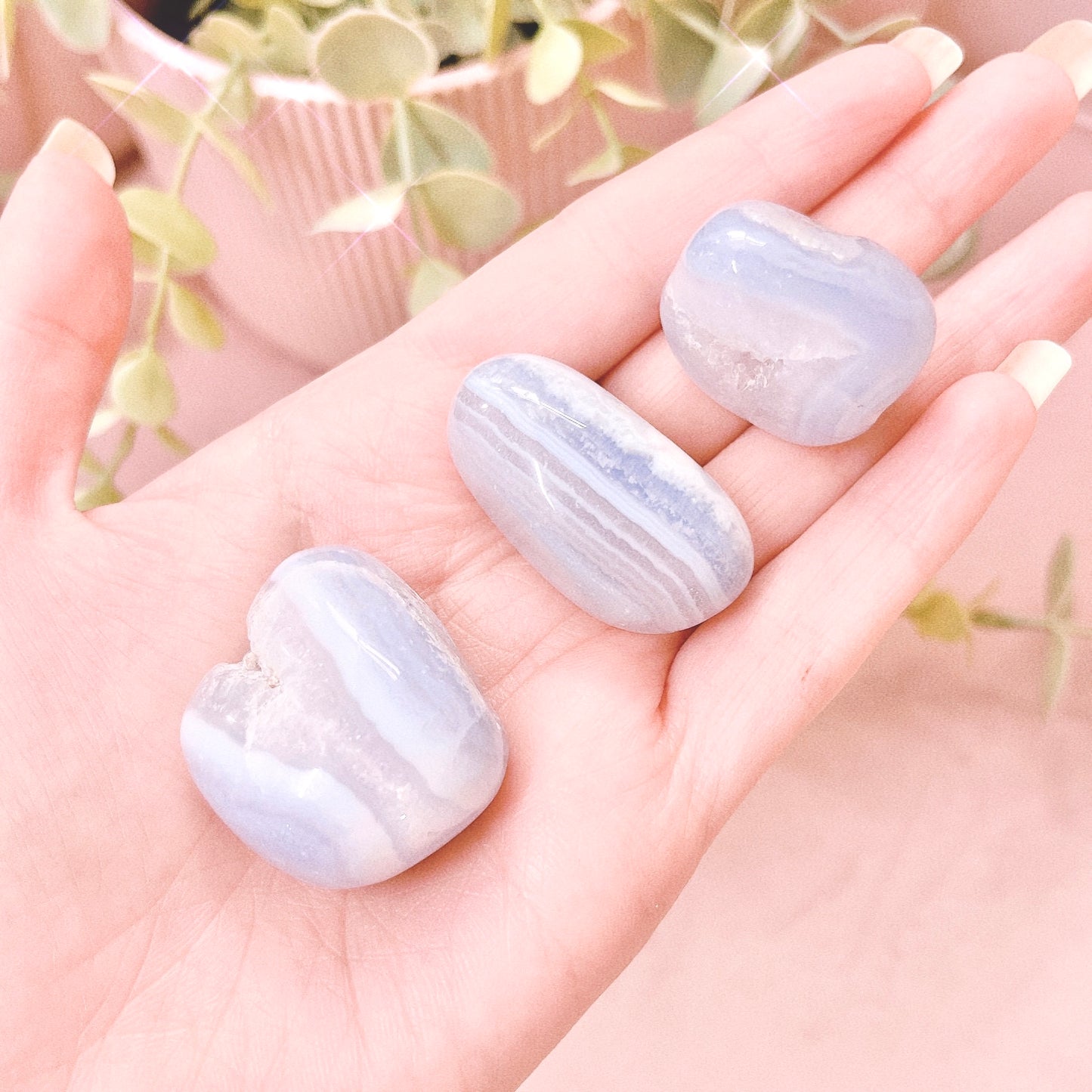 Known for its beautiful soft hue & soothing energy, Blue Lace Agate can inspire self-expression & a feeling of peace & serenity. It is a stone of communication, helping those who have difficulty being heard, or who need confidence & articulation to share their thoughts & ideas to others. It is the perfect crystal for anyone struggling with social anxiety or anyone who has difficulty speaking their truth. This crystal has a calm, soothing vibe that assists in cooling off any angry, jealous or hateful feelings...