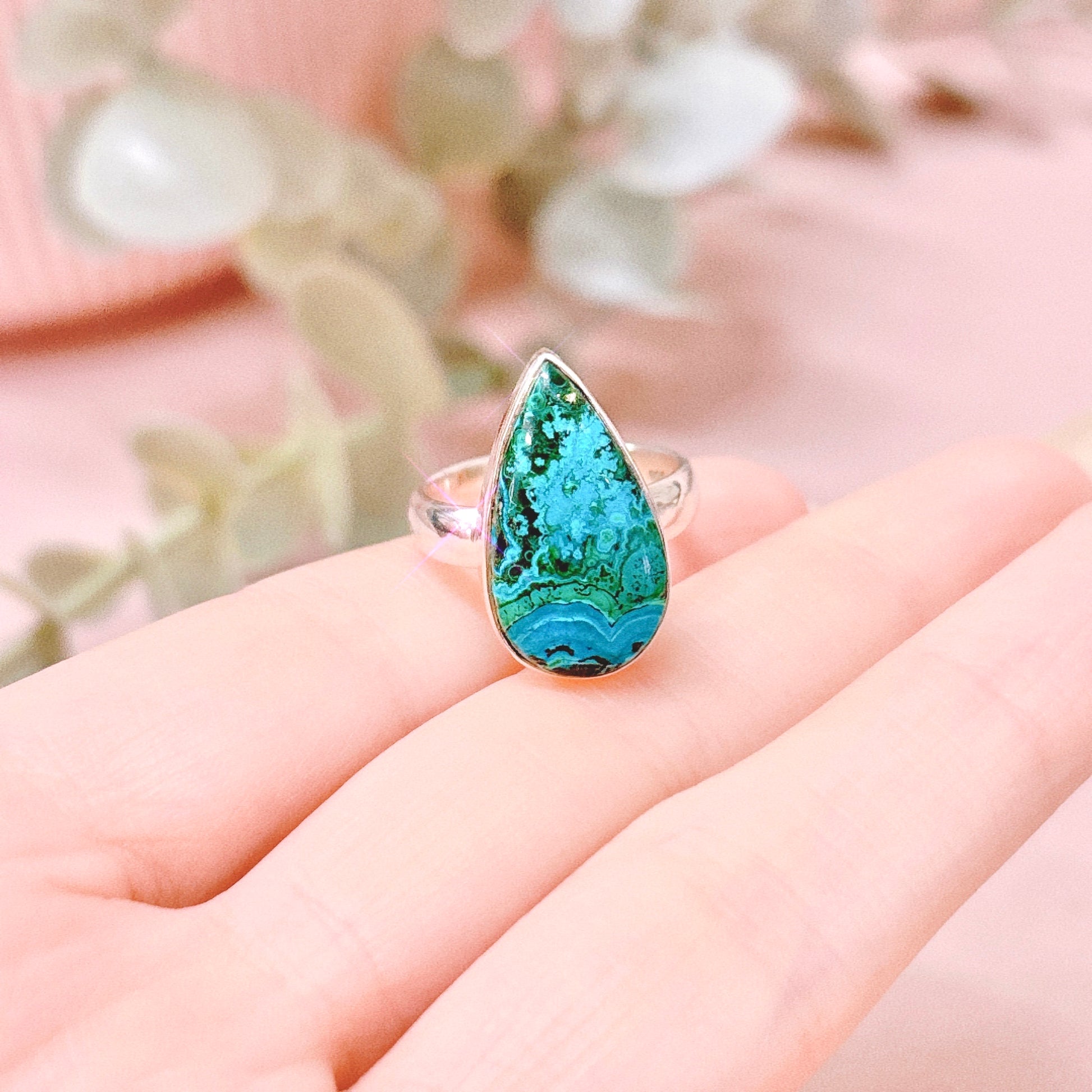 Chrysocolla Malachite 925 Sterling Silver Ring - Size 7