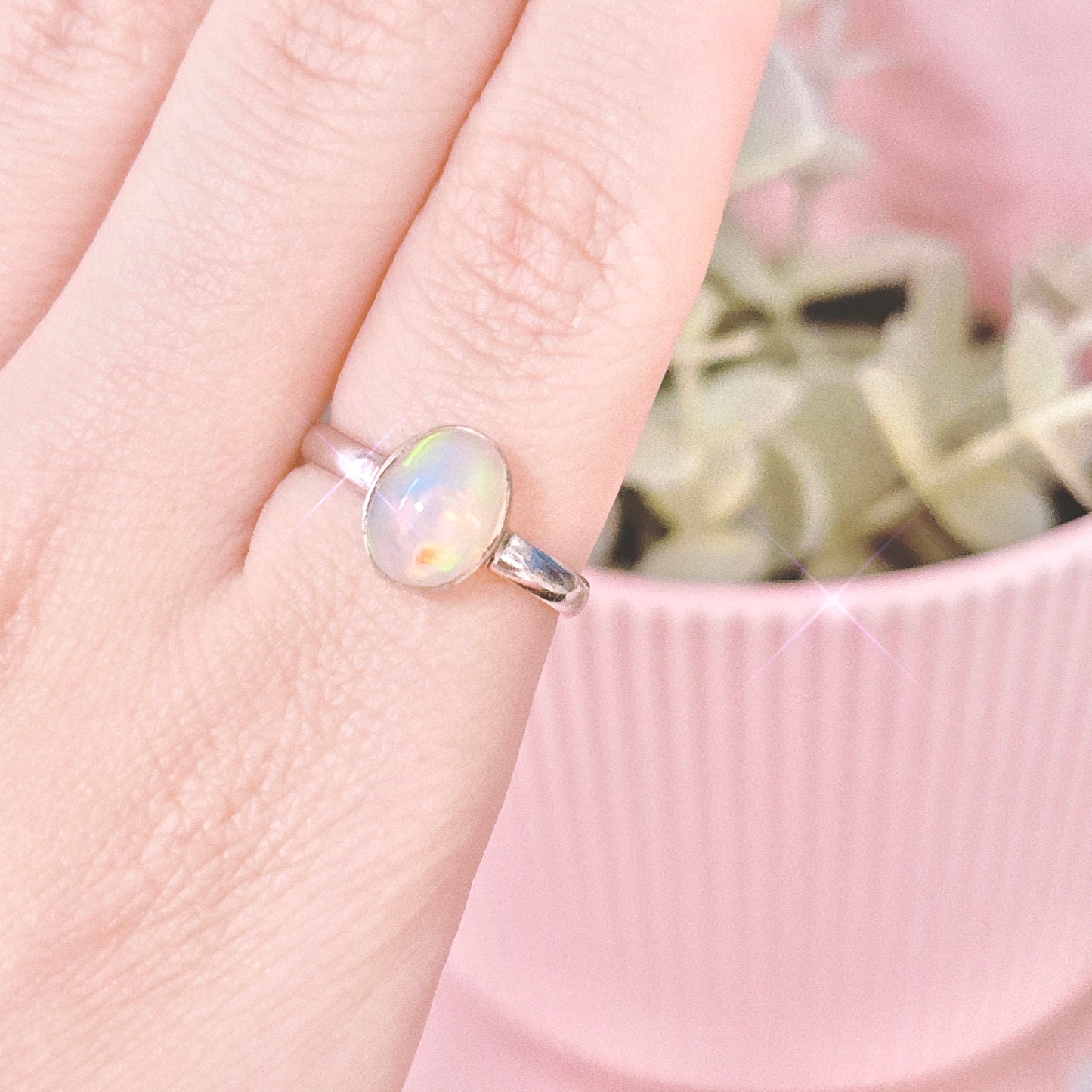 Ethiopian Opal Oval 925 Sterling Silver Ring - Size 8