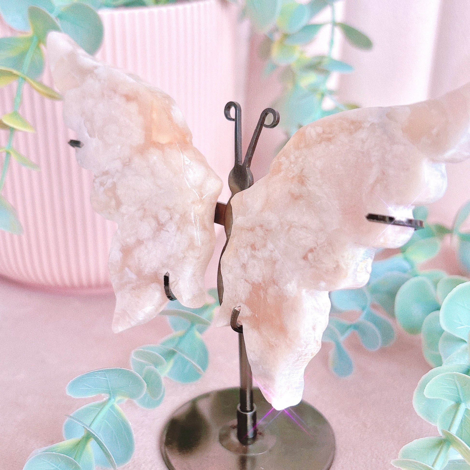 Flower Agate Butterfly Wings - Black Stand 13cm