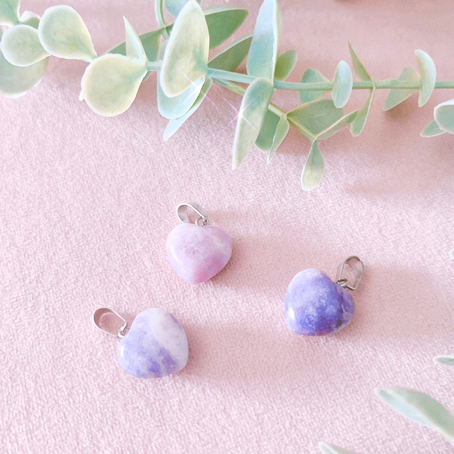 You will receive one lepidolite heart pendant, selected intuitively. Necklaces are not included, sold separately.
