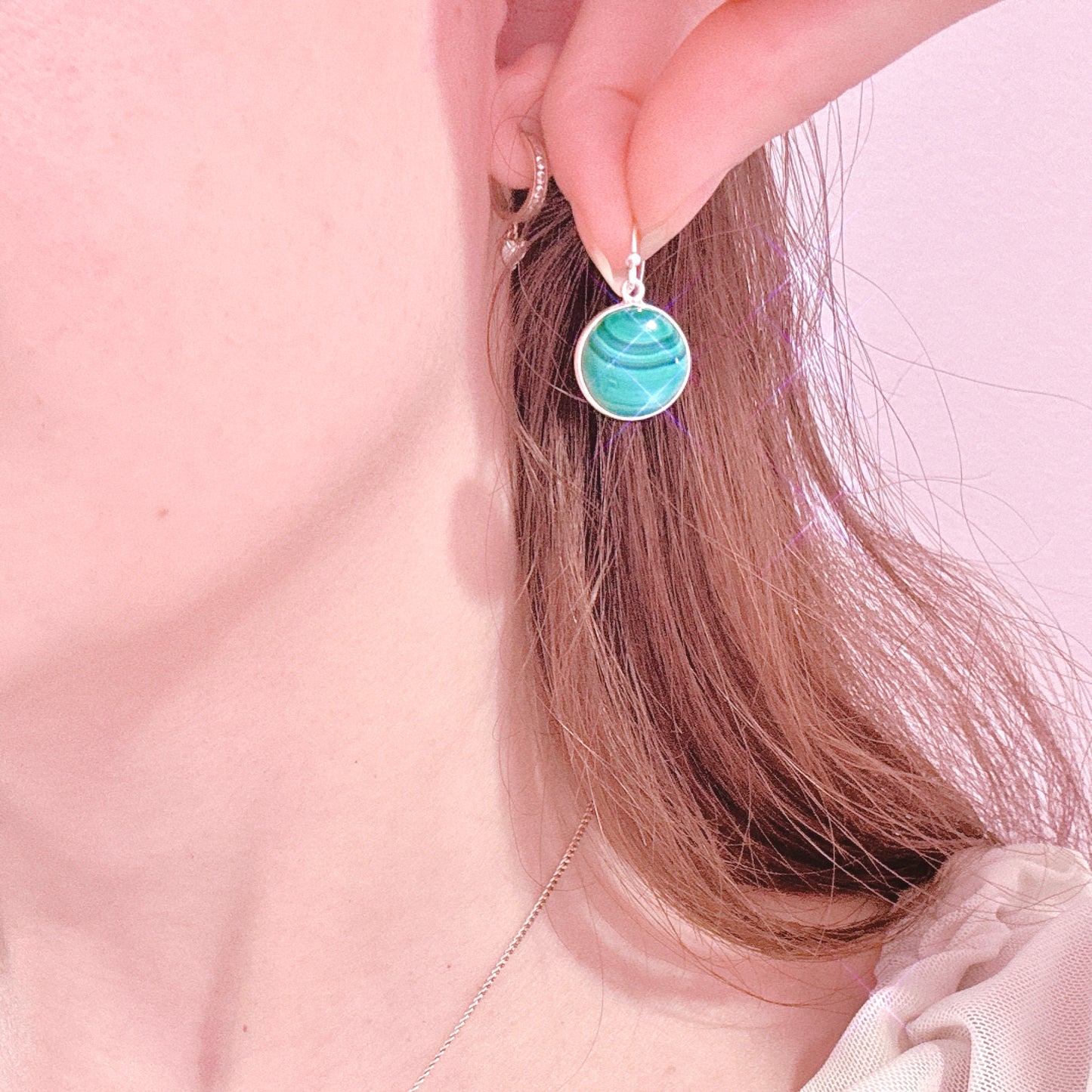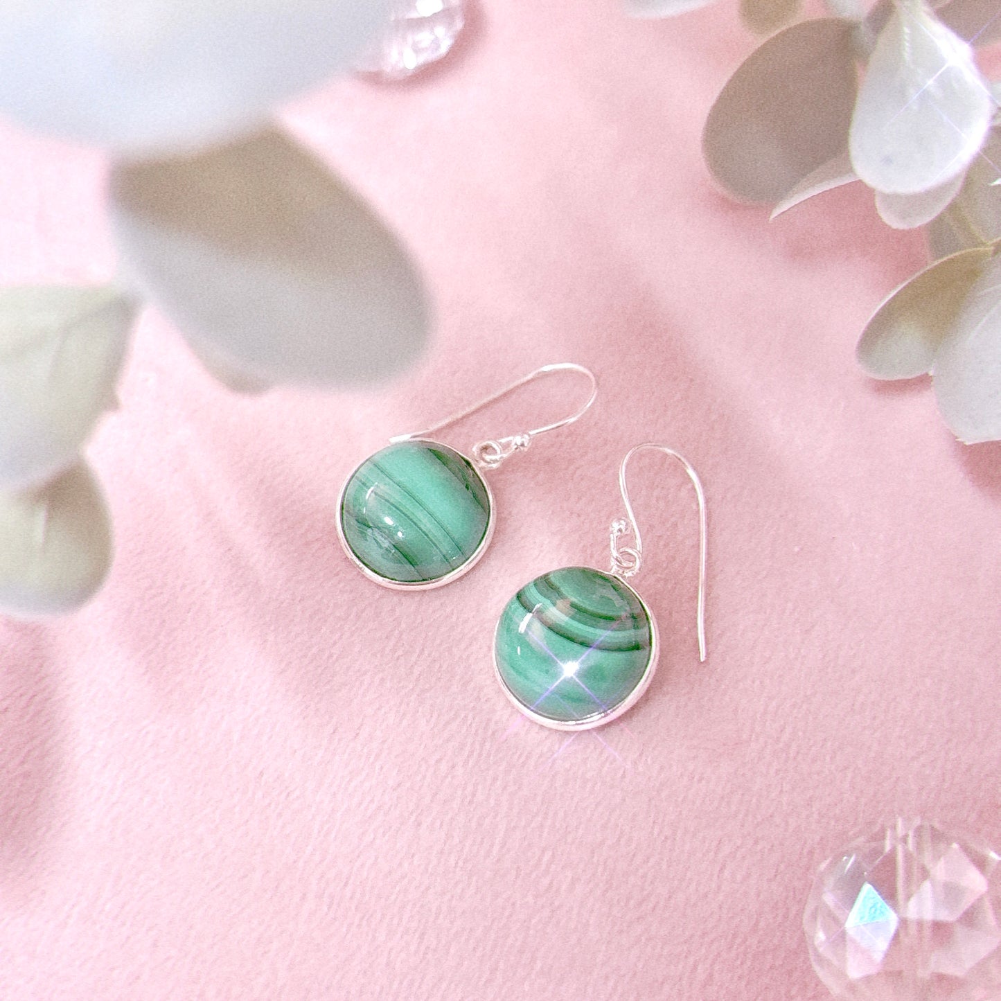 Malachite 925 Sterling Silver Circle Earrings