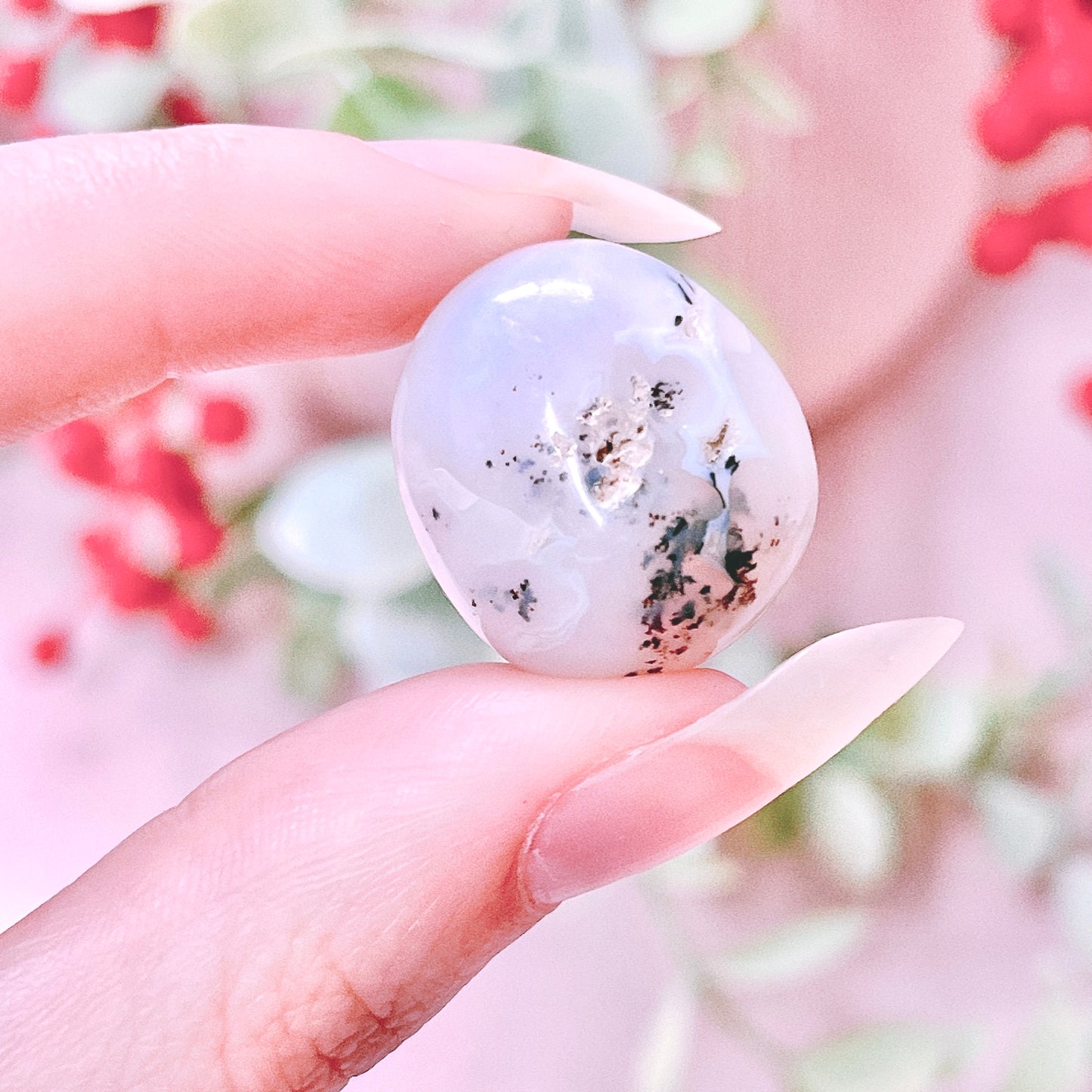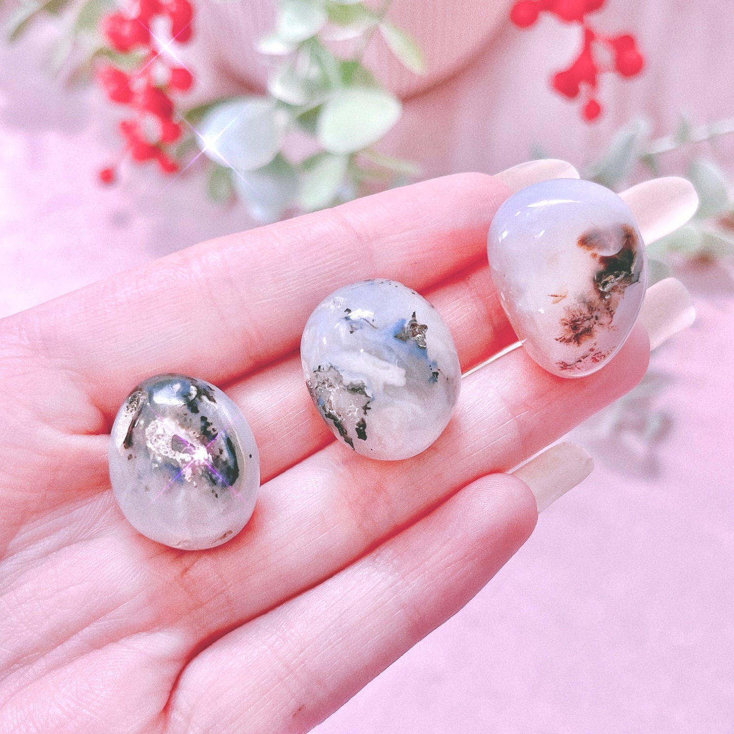 Merlinite, also known as Dendritic Agate or Dendritic Opal, is a special variety of Agate/Chalcedony that displays fern-like inclusions known as dendrites. This stone brings acceptance, healing, & encourages us to grow & move forward on a spiritual path towards enlightenment. It is known as a stone of alchemists, witches & wizards, as it lifts the veil between the subconscious, secret & spiritual realms. It provides a connection to infinite knowledge, hidden magic & ancient wisdom...